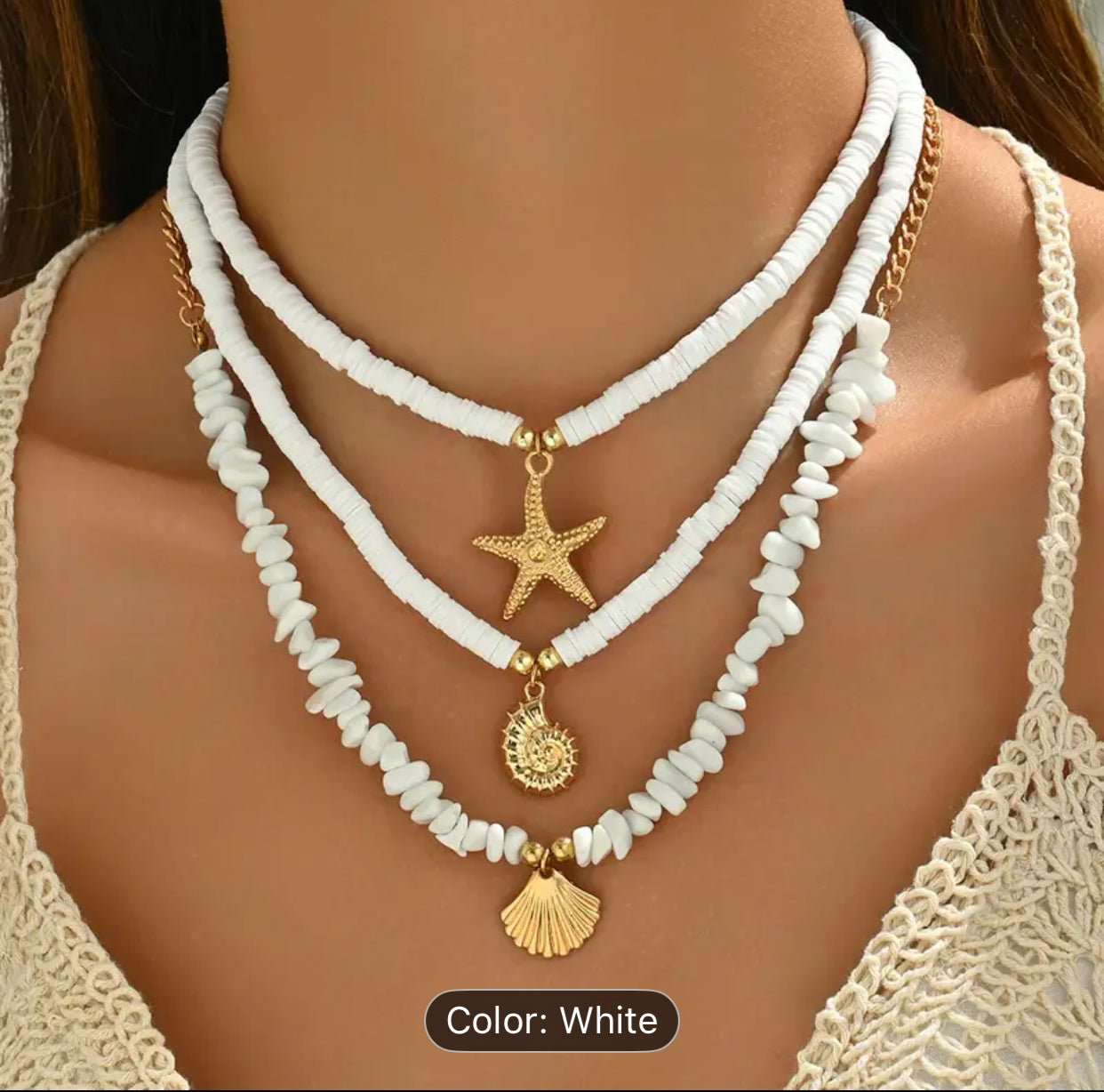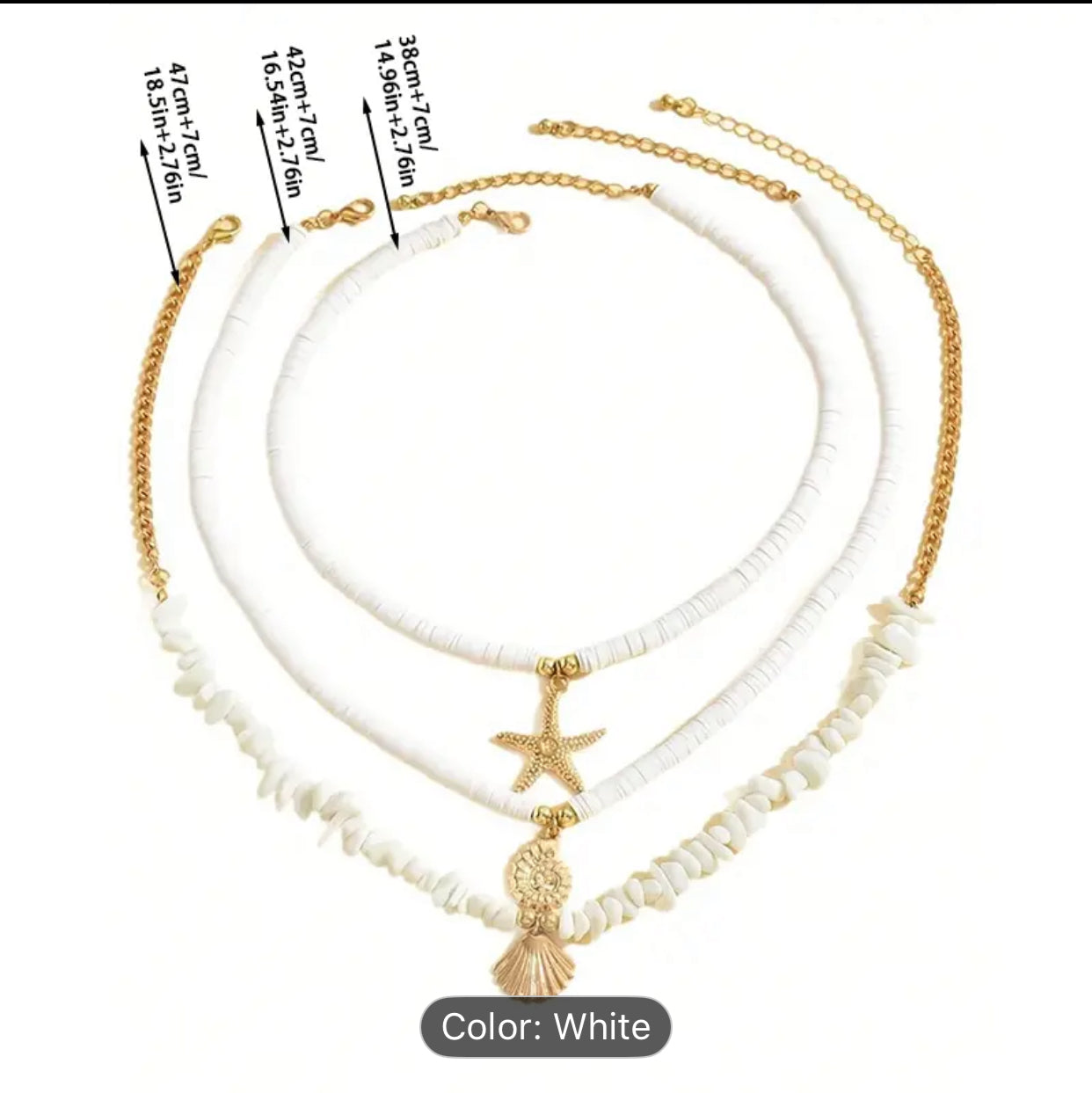 3pcs necklace with white clay stones and pedants